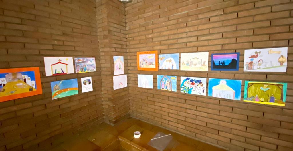 En estos días, quienes vengáis al templo para asistir a la celebración de la eucaristía os encontraréis, a la derecha de la puerta pequeña de entrada al templo, con una exposición de los belenes que nuestros pequeños han pintado y dibujado con sus manos.