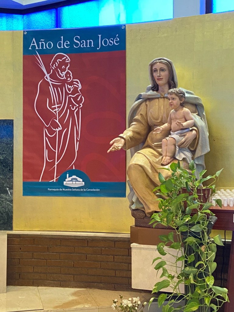Quienes asistimos a la celebración de la eucaristía en nuestro templo parroquial veréis que se ha colocado un bajante, colocado a la izquierda de la Virgen de la Consolación, con la imagen de San José. Esta imagen nos va a recordar a lo largo de este 2021 al esposo de María, de quien tenemos mucho que aprender como creyentes, como padres y como personas buenas que están dispuestos, como San José, a decir Sí a los planes de Dios.