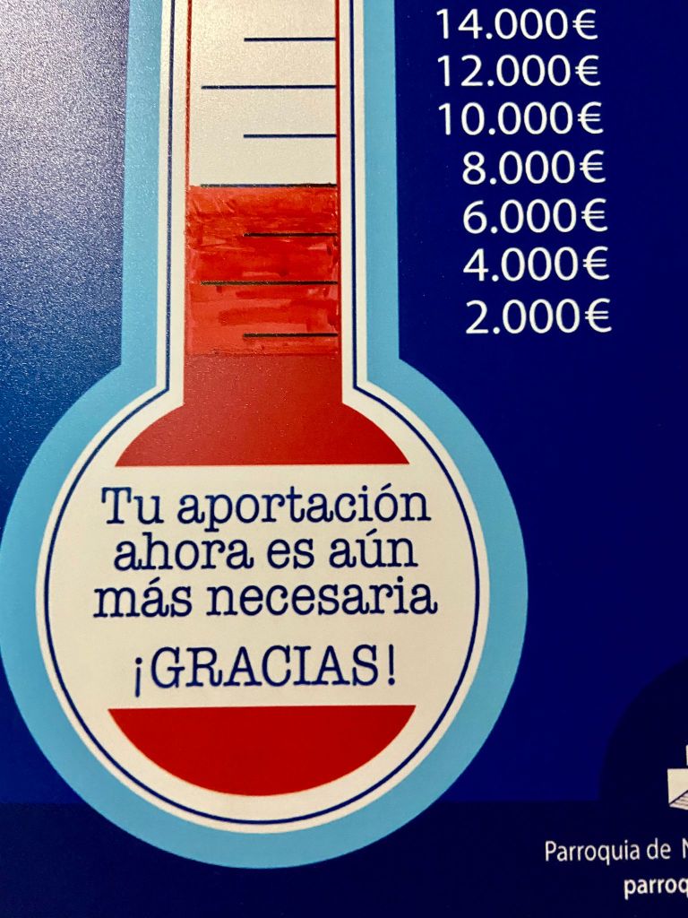 La respuesta de la comunidad a la solicitud que se hizo de aportar económicamente al fondo parroquial para cubrir estos costos está siendo buena. Hasta el momento de escribir esta nota se llevan recaudados ocho mil euros. Muchos feligreses estáis aportando poniendo vuestra donación en los sobres puestos a vuestra disposición en las puertas de acceso al templo. Otros lo estáis haciendo por transferencia bancaria cuyo número es: ES06 2038 1845 1360 0007 8838.