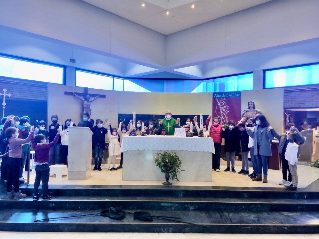 Poco a poco, esta misa se va consolidando y reúne a un mayor número de niños. Este domingo al altar subieron casi una treintena de pequeños. Desde aquí animamos a todos los padres a venir en familia a esta misa con sus hijos pequeños.
