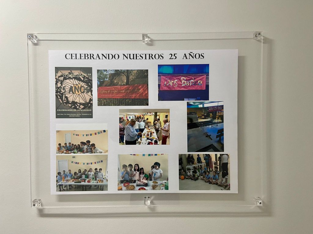 Gracias a la intensa dedicación y creatividad de nuestra secretaria Karina se ha podido tener lista esta exposición en la que, con fotografías suministradas por los feligreses, se hace un recorrido por los 25 años de nuestra historia en este templo.