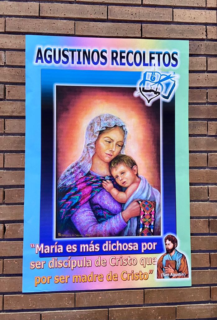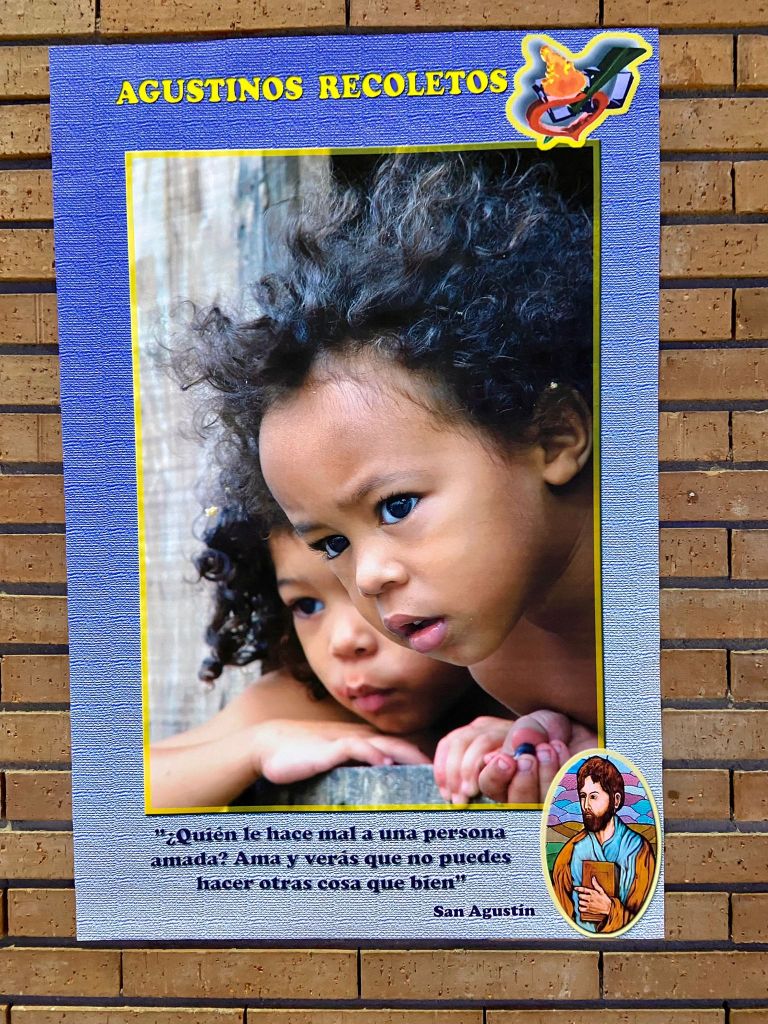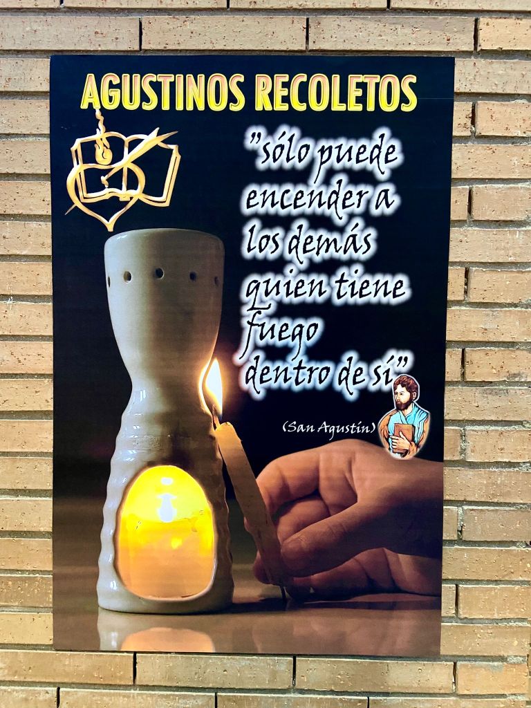 Otra forma que en la parroquia hacemos para visibilizar el pensamiento agustiniana es la exhibición de unas láminas con textos de San Agustín, acompañados de fotografías, la mayoría de nuestros ministerios, que ilustran el mensaje. Nuevas láminas han sido incorporadas en los muros del templo parroquial y así se hará también en los salones parroquiales. Será una forma de contribuir a nuestro conocimiento del pensamiento de San Agustín.
