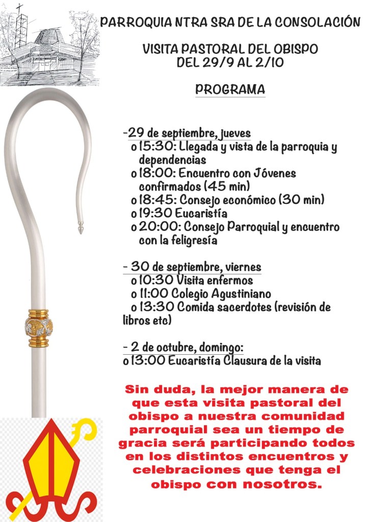Este jueves, 29 de septiembre, iniciará su visita pastoral nuestro arzobispo Carlos con lo cual es muy importante que todos los que podáis participéis de los actos preparados.